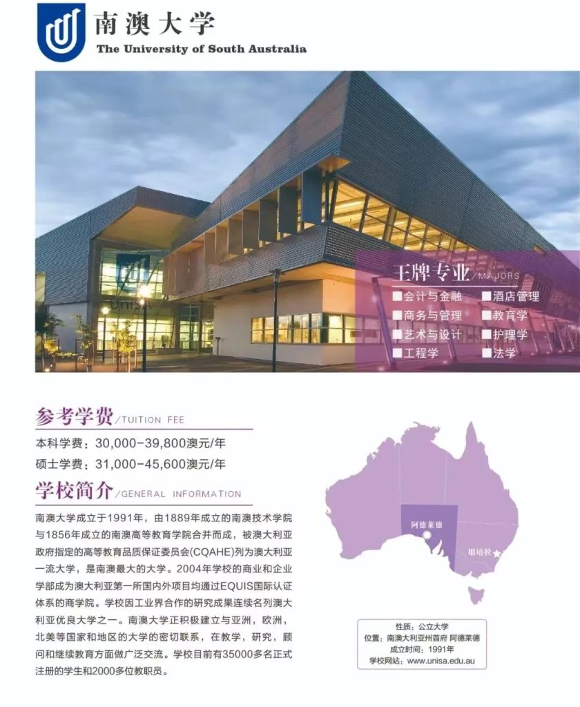 校区:阿德莱德(可以申请2+1年PSW工签)