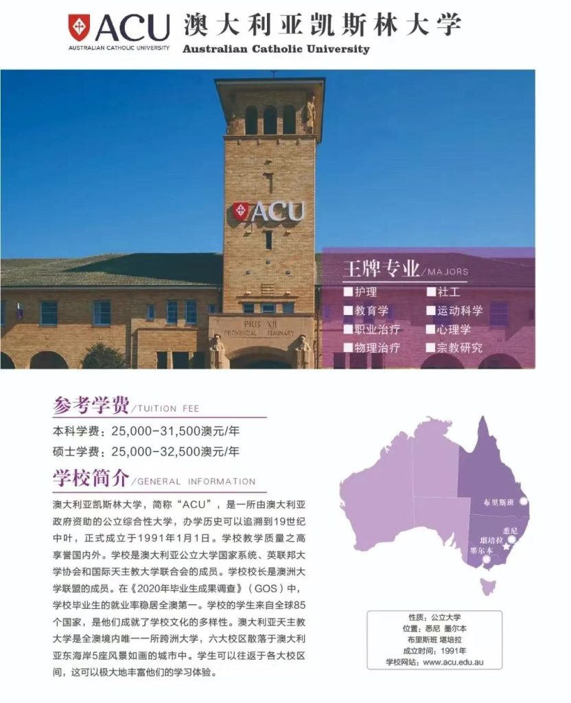 校区:堪培拉校区(可以申请2+1年PSW工签),悉尼校区
