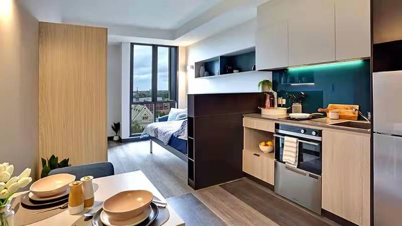 澳洲学生公寓一般有三种房型,一种是Studio:自带卫生间和厨房的单人公寓。