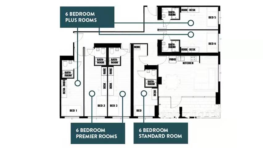 另外一种是En-suite:自带卫生间的单人公寓,5-6人公用厨房和客厅。
