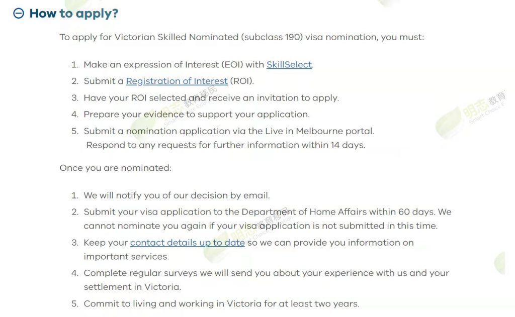 以上就是申请维州190州担保的流程和要求及相关内容了,由于篇幅的原因,其他细节不便赘述,小伙伴们如需进一步了解包括EOI打分和目标行业清单等在内的相关信息,欢迎直接联系我们。