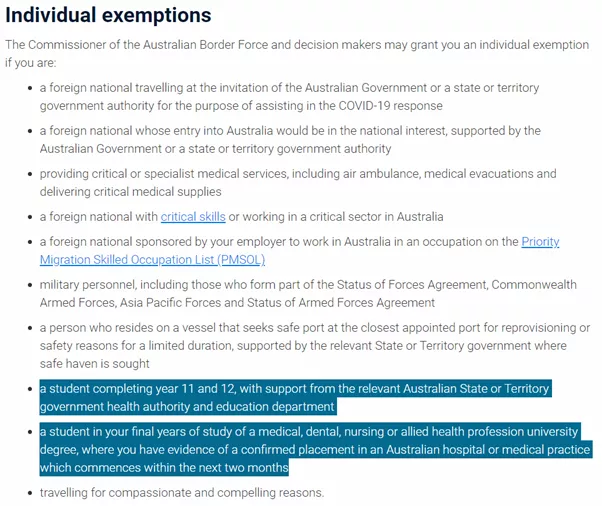 如果您符合以下条件,澳大利亚边防局和决策者可能会给予您个人豁免: