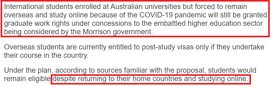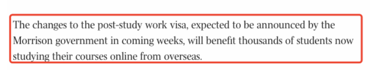 对此,澳洲政府考虑将调整政策,豁免境外上网课同学的485(PSW)签证申请。