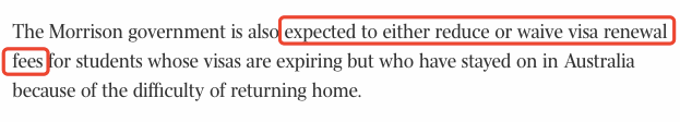 此外,对于无法顺利回国、滞留澳洲的留学生们,澳洲政府也在考虑降低或免除签证的续签费用。