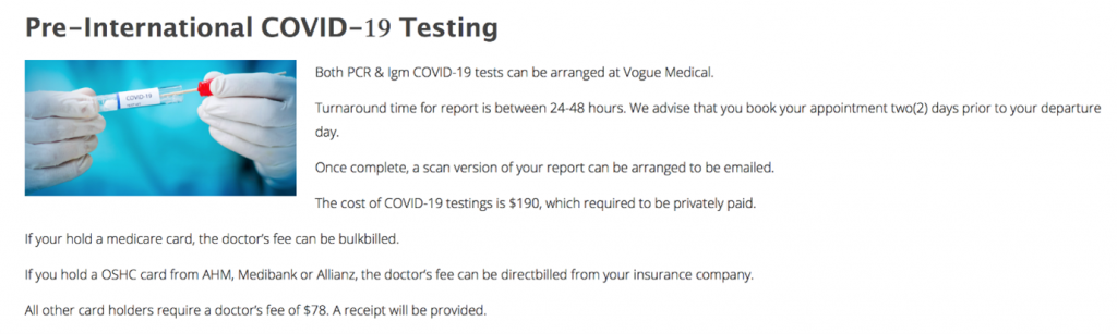 2、直接通过当地能够为国际旅行者提供检测服务的机构(如Healius公司,https://consumer.healius.com.au/;4Cyte Pathology,https://www.4cyte.com.au/)了解能否网上申请检测。