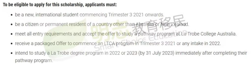 满足所有入学要求且接受了在La Trobe大学学习衔接课程的录取通知书