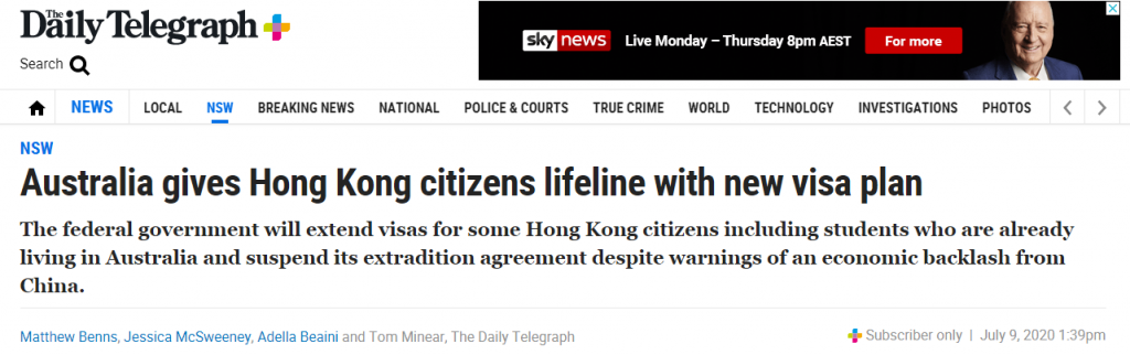 目前已在澳大利亚境内持有临时工作签证和学生签证的香港公民可获得签证延期,在澳居留五年。此后,将有机会申请永久居留权。