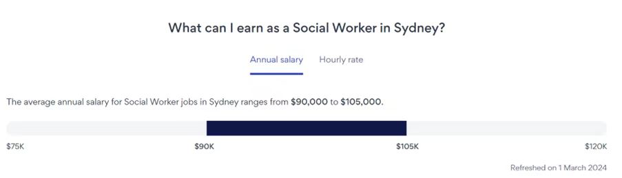 根据Seek网站给出的数据,悉尼目前社工平均年薪大致在9-10.5万澳元。
