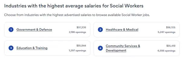 • 政府与国防部门的社工从业人员:工资可以达到97,208澳元