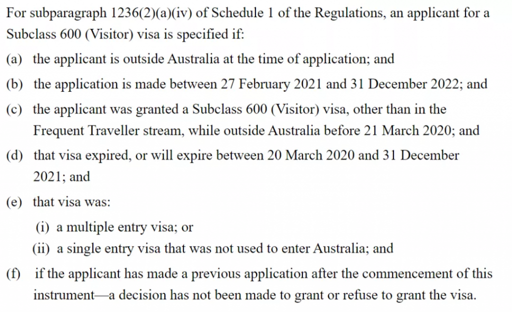 (c) 2020年3月21日之前,申请人在澳大利亚境外获得600旅游签证,但不属于10年旅行签证类别; 且