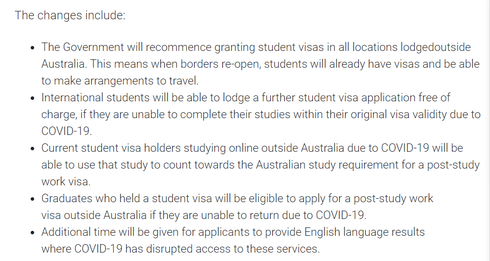 1、政府将开始在澳大利亚境外的所有地点发放学生签证。这意味着当边境重新开放时,学生已经获得签证,随时安排出行。