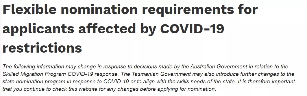 “由于新冠疫情的瞬息万变,塔州政府对于塔州提名计划的要求进行了一些调整或者使其与塔州的技能需求保持一致。”