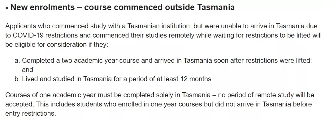 4. 在塔州以外开始课程的注册新生如果申请人是刚注册还没正式入读的新生,由于疫情限制无法入境塔州而开始在境外开始课程的。有可能被考虑,如果满足以下条件: