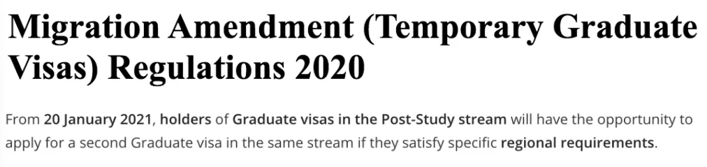 澳洲485毕业生工作签证续签法案正式公布,澳洲移民局将于2021年1月20日正式接受续签申请!但递交申请只限澳洲境内。澳洲485毕业生工作签证,目前其类别下设有两个分支:Post-StudyWork(PSW)和Graduate Work(GW)。此次公布的新法案,仅适用于PSW分支,对GW分支无影响。