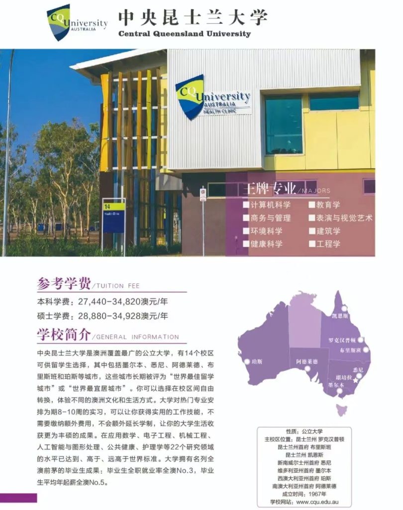11. 中央昆士兰大学(Central Queensland University)大部分专业提供11月开学的选项。