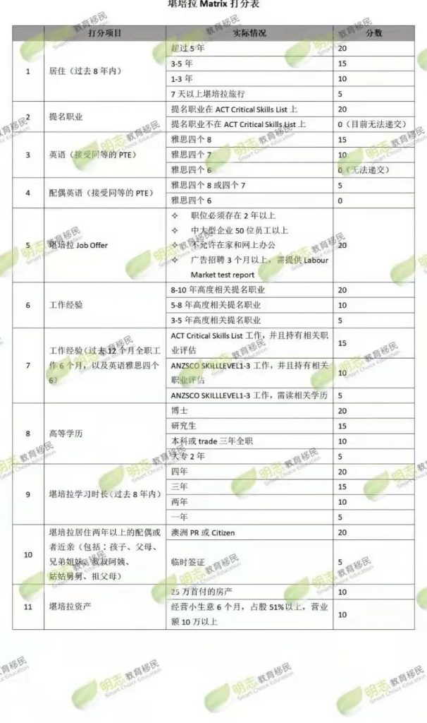 申请人要获邀必须至少获得Matrix的65分,以下是打分表,供大家参考。