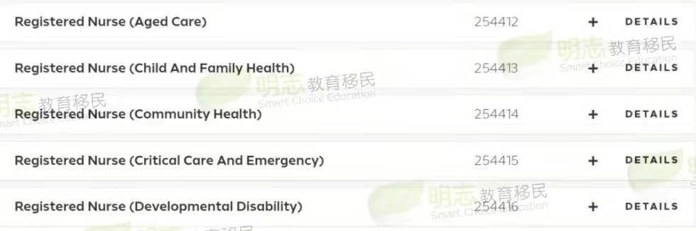| Registered Nurses Nec 注册护士 | 5年 | 等同于雅思四个7 | 65 |