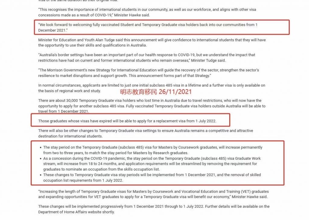 爆炸新闻!莫里森刚刚官宣:12月1日起,留学生等临签全体可入境!完全接种疫苗的签证持有人将被允许来澳大利亚,而无需申请豁免!
