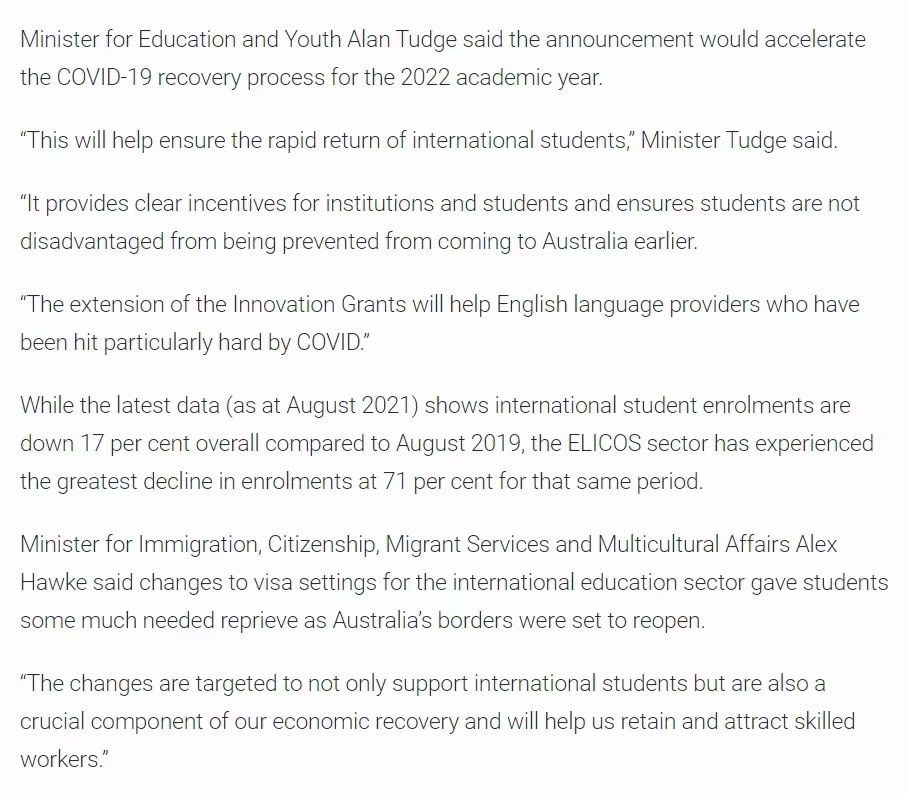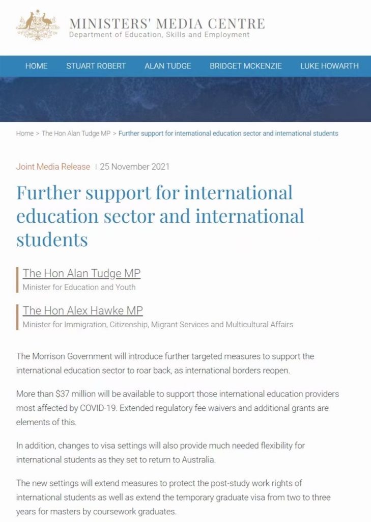 【重磅】澳洲移民部长今天正式宣布,随着12月1日边境管制放松,将为多个签证类别持有者提供针对疫情影响的特殊优惠政策,包括: