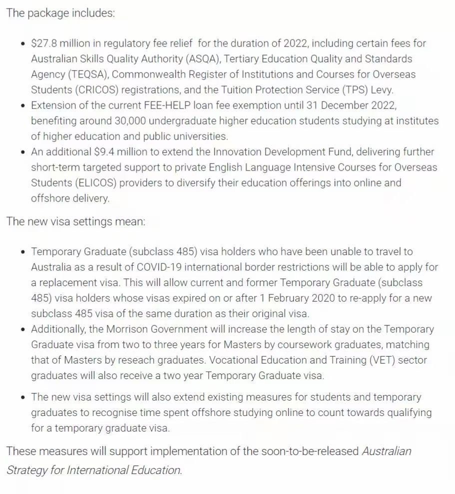 此外,更新后的485工签系统,都会包含由于受疫情影响在境外学习时间的认可(用于满足2年澳洲学习要求)