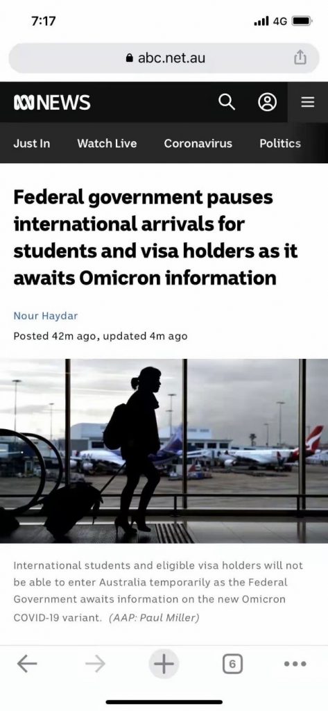 最新消息: 国际留学生以及其他临时签证的入境澳洲的日期从12月1号延期两周到12月15号。