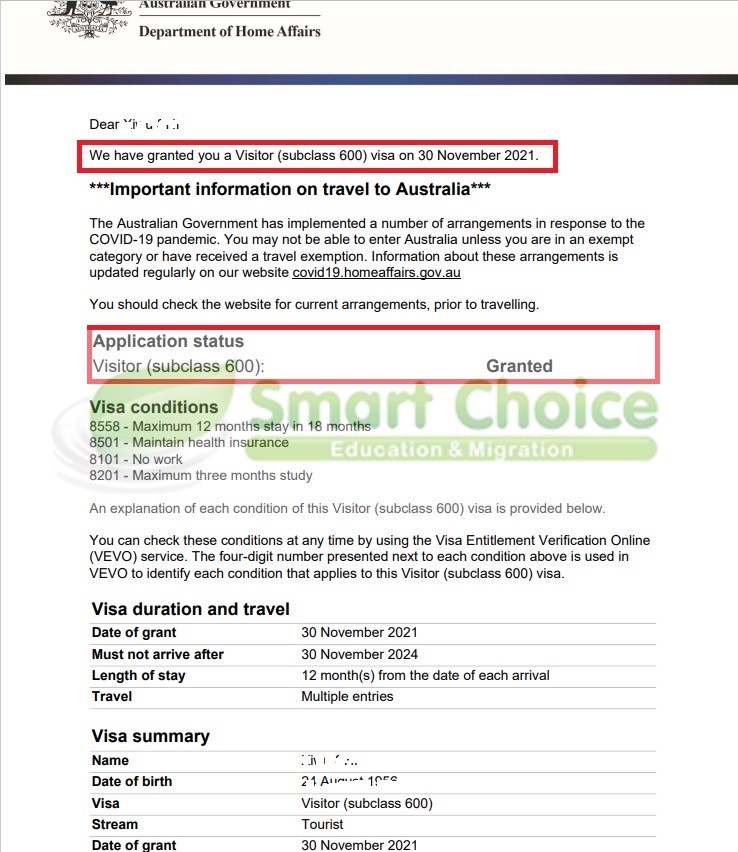[庆祝][庆祝]恭喜客户S先生成功获批澳洲入境豁免!目前澳洲PR/公民父母仍需申请入境豁免才能入境澳洲,临近年末圣诞假期,移民局准备放假且申请量增大,大家一定要提早为出行做准备哦!