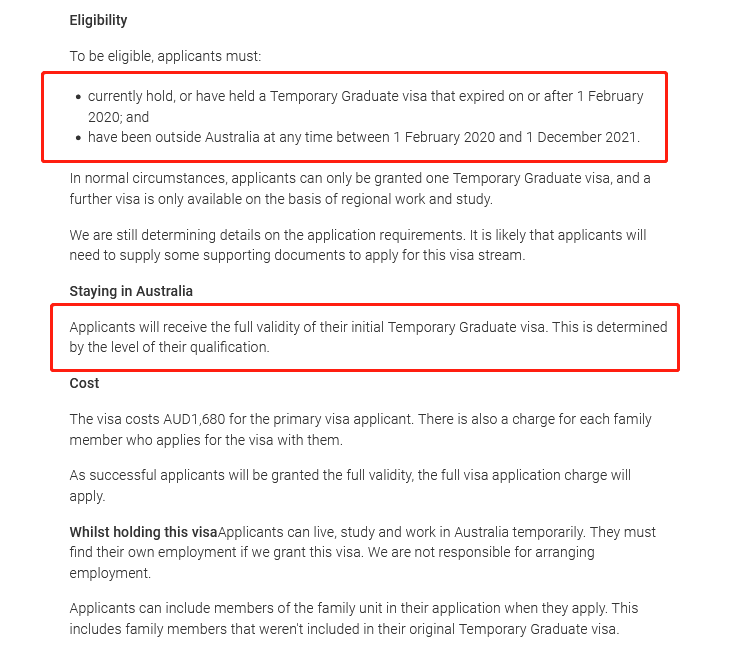 我们举个例子,A同学的485刚下来没多久,他的签证会在2022年4月到期,他在2020年6月离开澳洲,回到中国,边境开放后,他计划于2021年12月底来到澳洲。他可以用现在的485签证继续找工作,积攒工作经验,并且在2022年4月份签证到期之前,申请一个新的2年的485签证,继续在澳洲工作,积攒工作经验。